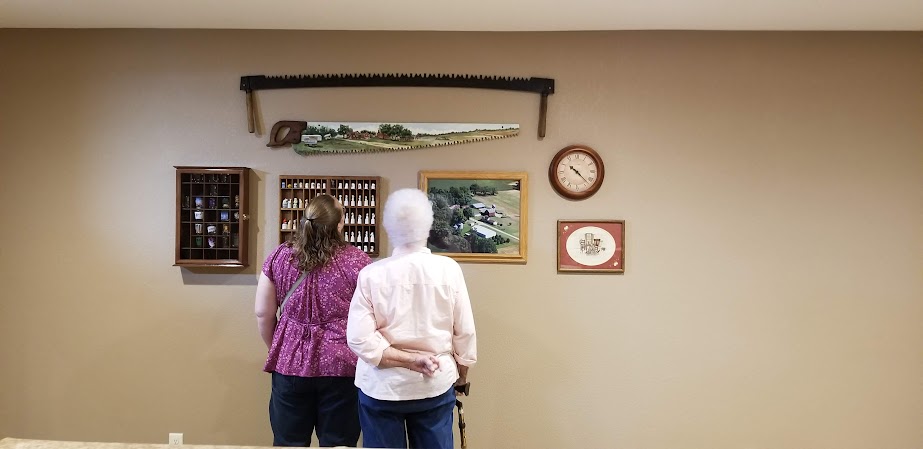 Christina Marie and Carolyn Dagmar admiring decorations in kitchen/gaming area off of large family room area